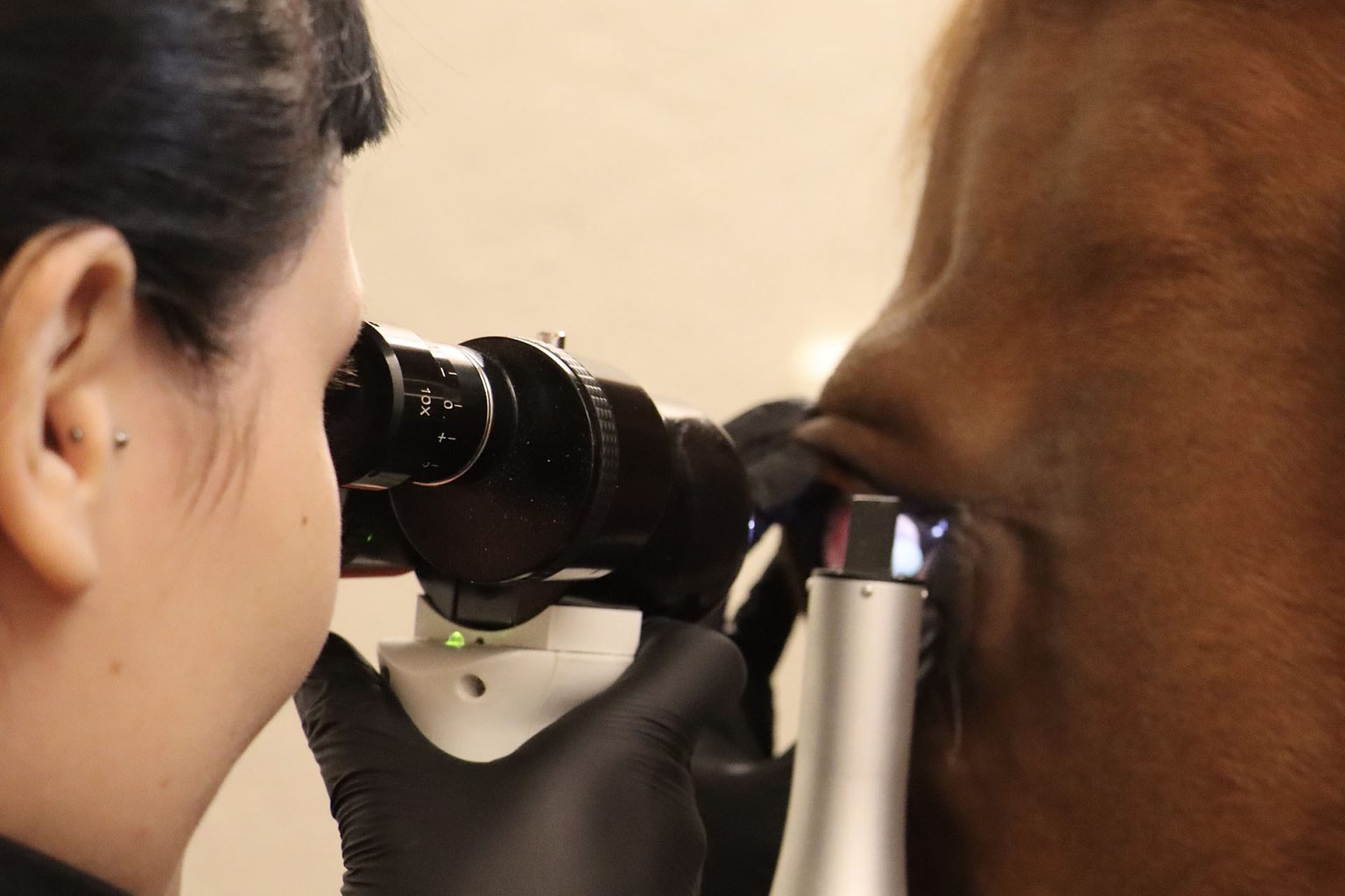 Kaik­ki eläin­lää­kä­rim­me hoi­ta­vat akuut­te­ja sil­mä­vam­mo­ja, kuten sar­veis­kal­vo­haa­vo­ja. Osa eläin­lää­kä­reis­täm­me on lisäk­si eri­tyi­ses­ti jat­ko­kou­lut­tau­tu­nut sil­mä­sai­rauk­sien hoi­dos­sa. Meil­lä on käy­tös­säm­me nyky­ai­kai­nen väli­neis­tö perus­teel­li­sen sil­mä­tut­ki­muk­sen tekoon. Kli­ni­kal­la on tavan­omai­sen tut­ki­mus­vä­li­neis­tön lisäk­si sil­mä­tut­ki­muk­siin tar­koi­tet­tu bio­mik­ros­koop­pi, jol­la sil­mä ja sil­män­poh­ja pys­ty­tään tut­ki­maan tar­kas­ti, sekä sil­män­pai­ne­mit­ta­ri. Tut­ki­muk­sen tuek­si voim­me ottaa sil­män pin­nas­ta myös näyt­tei­tä, jot­ka lähe­te­tään ulkoi­seen labo­ra­to­rioon ana­ly­soi­ta­vak­si.